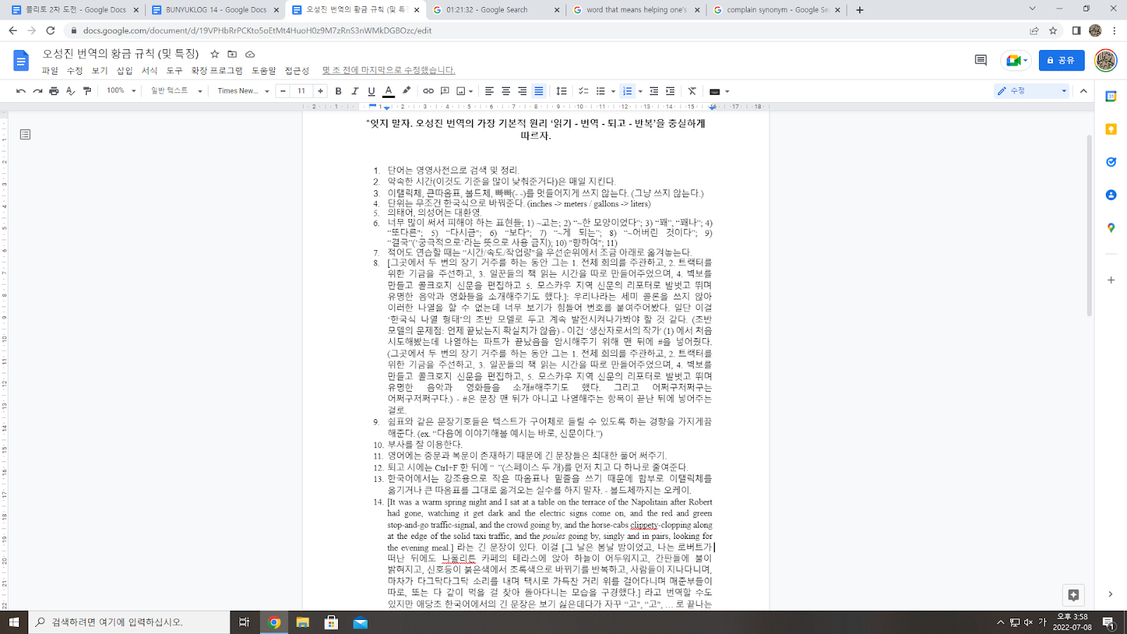 말나온김에 “오성진 번역의 황금 규칙”이란 문서 맨 앞에 적어놨다.