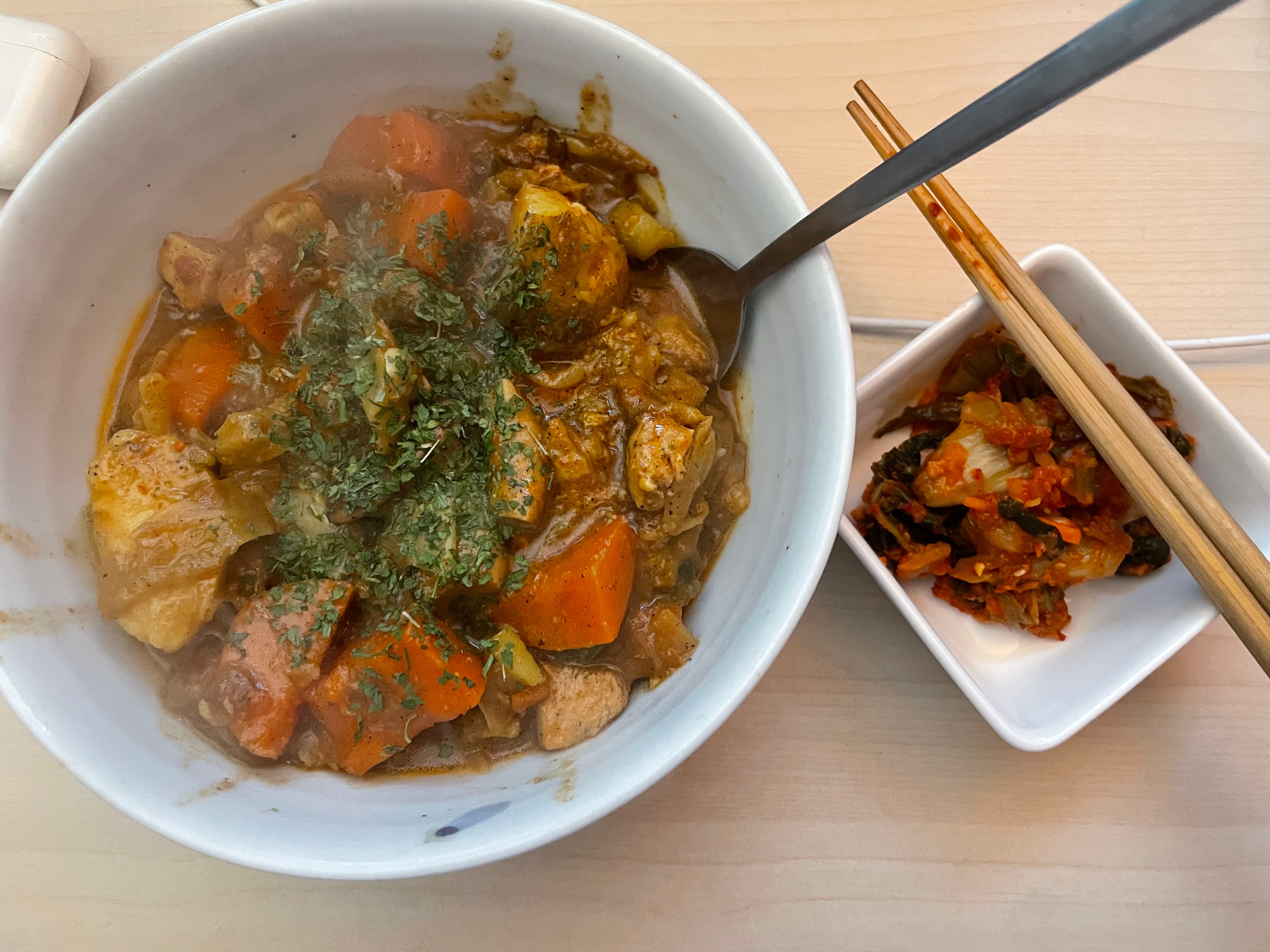 또 음. 요즘은 카레를 자주 먹습니다. 어떤 씨발새끼가. 아, 욕이 헛나왔습니다. 그럴 일이 있어서요. 그 뭐냐, 부족한 돈을 아끼면서 야채가 많이 들어간 게 뭐가 있을까 했는데 떠오른 게 카레였습니다. 카레를 해뒀다가 남은 카레는 락앤락통에 넣어서 냉장고에 두고 다음 끼니때 꺼내서 처리하는 식인데 한 번 만들면 한 다섯끼 이상은 거뜬합니다. 어쩌다보니 카레를 만들기 위해 재료들을 썰어넣고 달달 볶다가 물을 조금 넣고 조금씩 추가하면서 졸이는 과정이 생각을 비워주는 것 같아서 재미가 붙어버렸습니다. 그래서인지 카레에 들어가는 재료도, 만드는 방법도 조금씩 발전하고 있는데 저만의 카레 레시피를 완성하는 날이 많이 멀지 않은 것 같아요. 어제 만든 카레엔 양배추, 당근, 양파, 감자, 파, 닭가슴살, 카레 블록(전 S&B사의 Extra Hot맛 카레가 좋습니다), 버터, 브로콜리, 마늘, 버섯, 페페론치노, 파슬리가 들어갔습니다. 맛있었습니다. 별로 어렵지 않으니까 다음에 저처럼 스스로에게 투자해야 할 거리는 많은데 돈은 없고 뭣하나 되는 일도 없이 답답할 때 한 번씩 해드셔보세요.